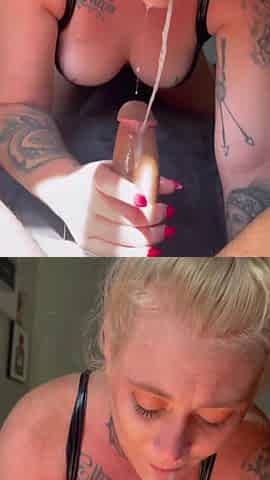 Inked Blonde PAWG Gulps Hubby Friend's Piss Before Sloppy Anal Ride
