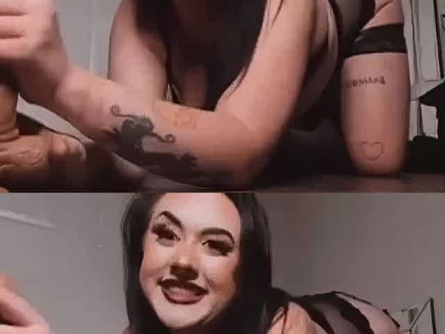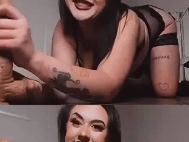 Tatted Babe in Black Lipstick Gives Sloppy BJ