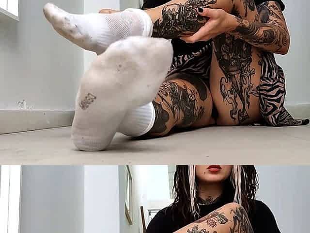 Milky Xiu teases with her sloppy soles and takes off her milky socks