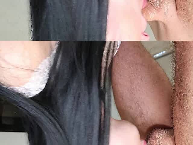 Hot honey on her knees sucking large wang