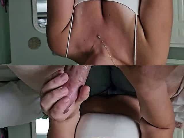 BARBERSHOP CREAMPIE, CUSTOMER FILLS HER SNATCH WITH CUM - POV