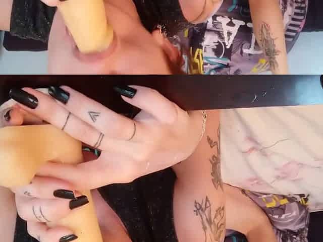 Goth girl giving sloppy deepthroat until I cum into her throat