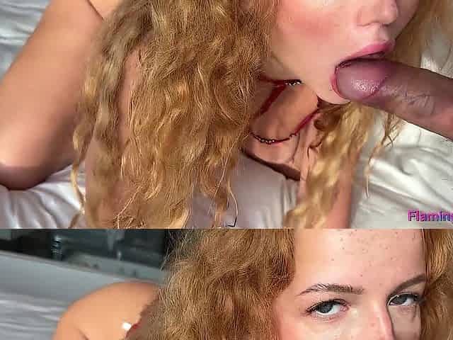 A slutty slut with fiery red hair likes when her marvelous face is flooded with goo!