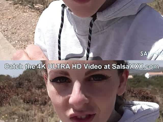 Outdoors POV video of a kinky babe giving a sloppy blowjob
