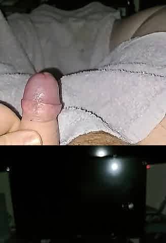 Tugjob penis watching porn and large jizz flow - Slow motion