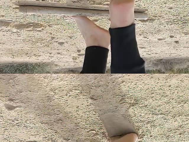 Super slow motion feet walking on dusty ground -- DIRTY FEET