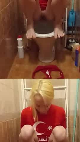 Миниатюрная тинка решила снять для вас видео о том, как она писает на корточках перед сном.