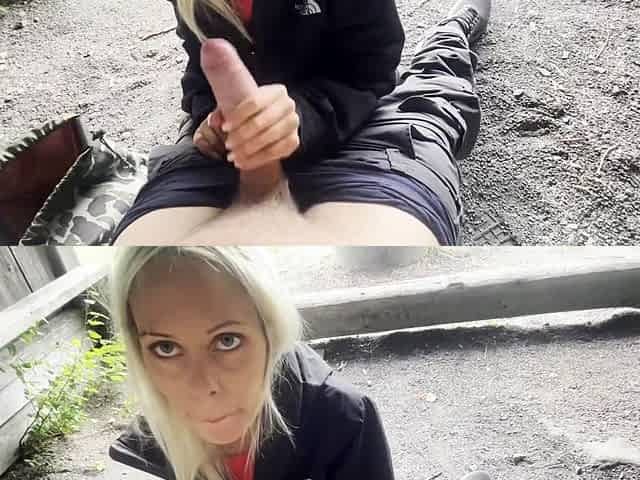Brunette Slut Gives Blowjob To Big Cock Outdoors