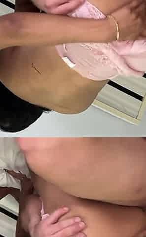Laura XXX model 2021 footjob and tugjob on pink nylon until this chab cums
