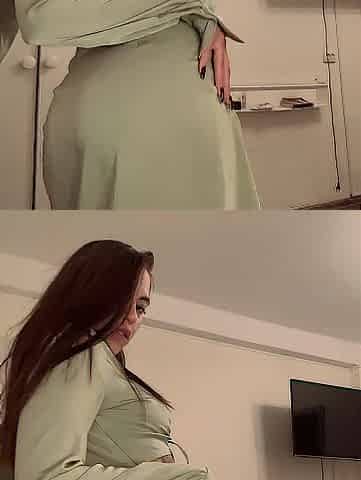 marvelous brunette hair in a green hawt dress.