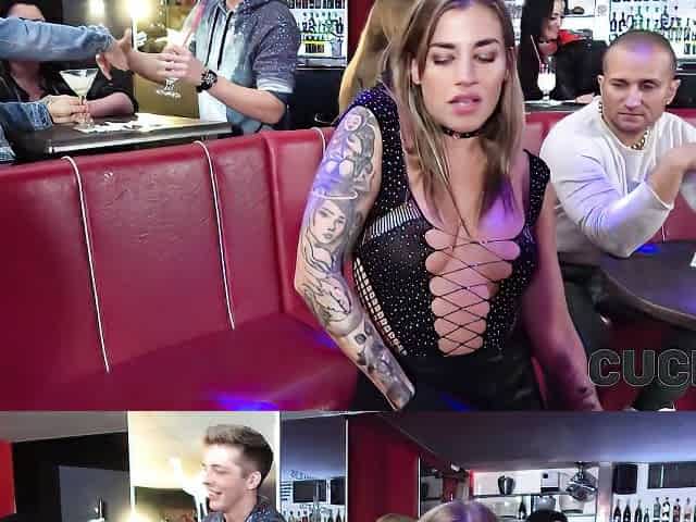 Tattooed stud enjoys while sharing his slutty wife Monique Alexander