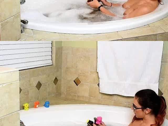 Big Boobed Blonde Masturbates With A Dildo In The Bathroom