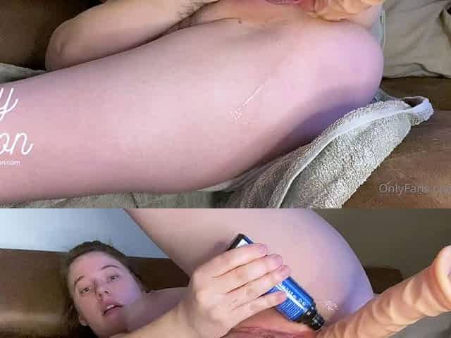 Amateur MILF oils up and toys her pussy