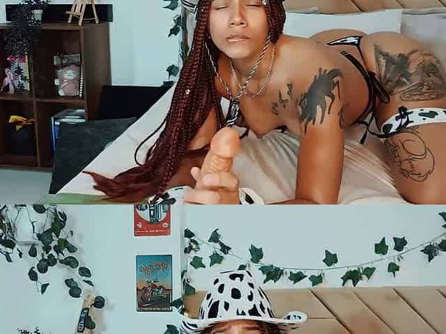 This cowgirl slut gives you a blowjob to get your milk out!!!