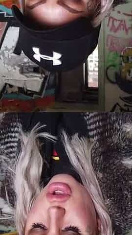 Blonde Sister Smoking Cigarette and Sucking Large Cock in the Foreground - Better Blowjob