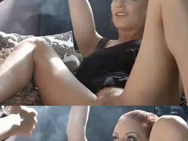Cougar Stripped Smokin' On Couch Legs Wide widen Big Breasts