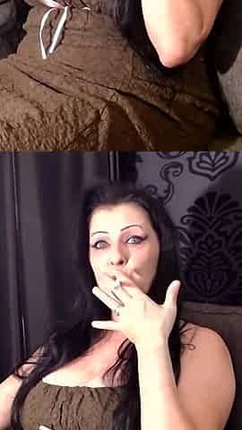 Smoking fetish with brunette in sexy lingerie