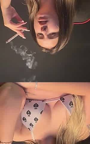 hawt golden-haired smokin' cigarette and sucking large shlong