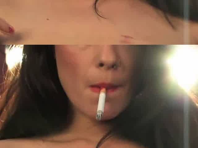Smoking fetish with brunette in sexy lingerie