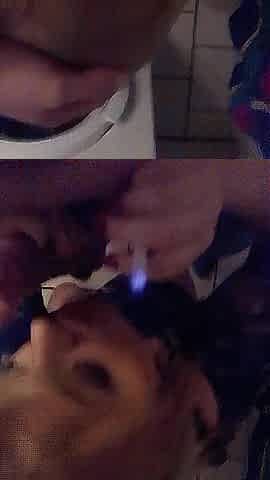 Golden shower after smokin' and cum on the face and hair plus drinking pee
