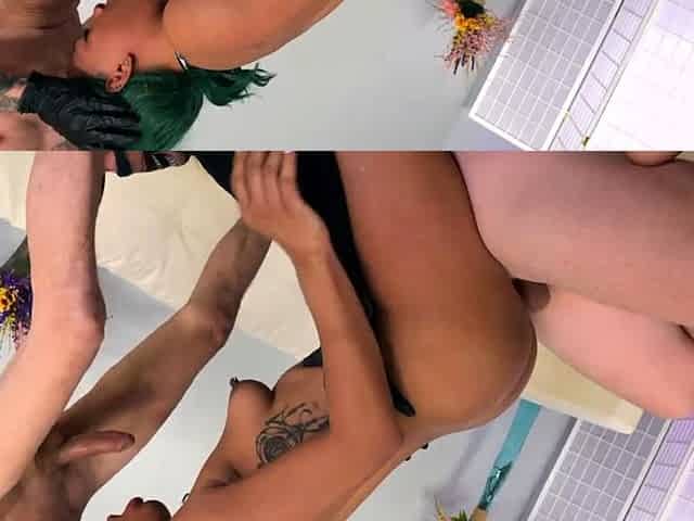 Smokin' Gothic Egirl giving footjob & tugjob to BWC