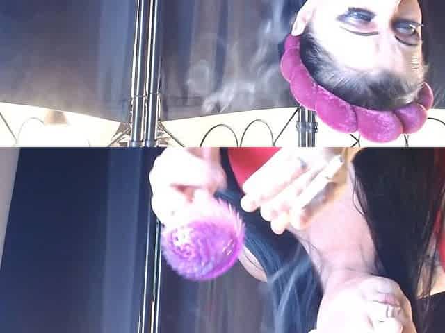 Horny Italian MILF Artemisia Love enjoys smoking while wearing a butt plug