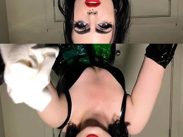 Hot emo punk girl with pink short hair smoking and teasting on webcam
