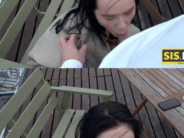 SISPORN. Instead of smoking cigarette brunette has sex with stepbrother