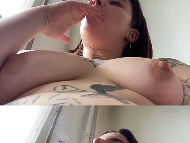 I jerk off my clit piercing after I blow vape smoke in your face. But I kept getting interrupted!