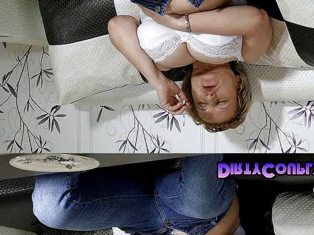 Big breasted blonde Bridgette shows her evening smoking lesson