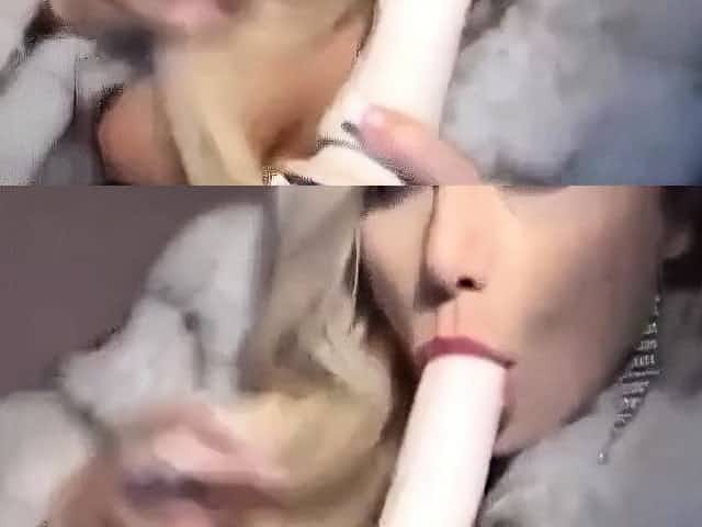 Filthy blondie Sneganna smokes hookah and masturbates with it