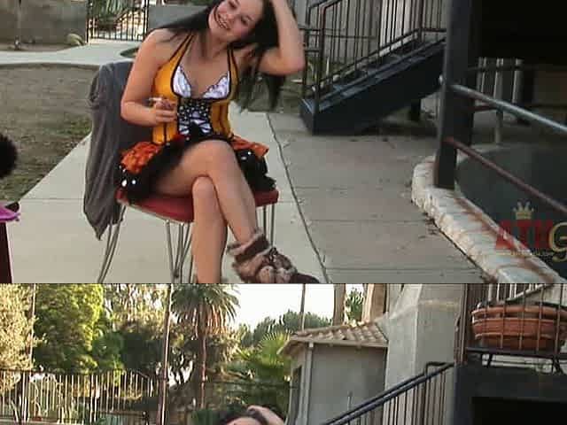 Milf Shione Cooper smoking and masturbate naked only in coat on balcony
