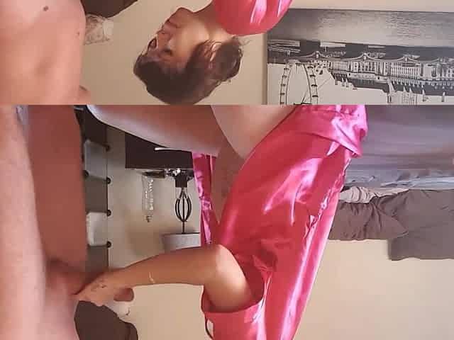 Girl in Silk Robe Jerking Cock and Smoking Cigarette