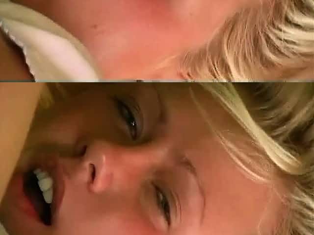 Smoking hot blonde babe gets her tight ass slammed by two older men
