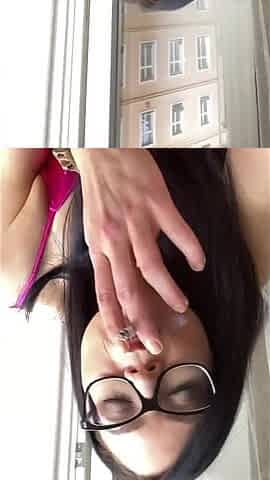 Pregnant Lady with Big Tits Smokes and Masturbates on Webcam