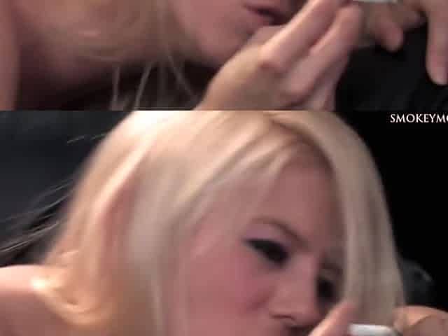 Strokies Leah Cortez blows cigarette smoke on hard cock