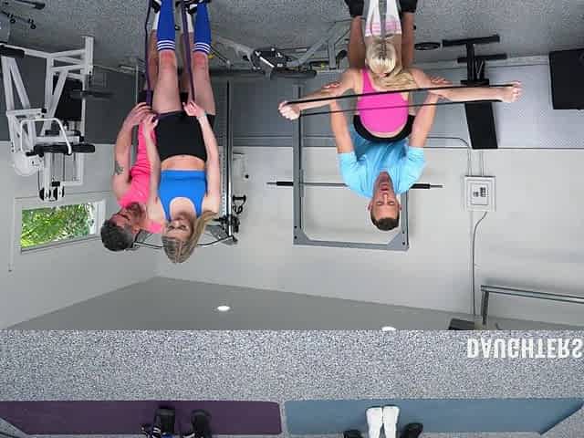 Sexy Kay Lovely has a foursome with Amber Moore in the gym