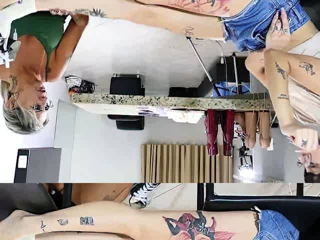 Nikki Nicole is a tattooed babe who wears shorts to ride the cock of her lover.