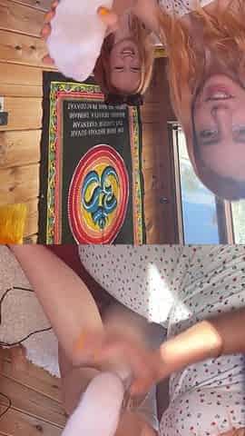 Hot large butt doxy in petticoat and sneakers riding on vibrator