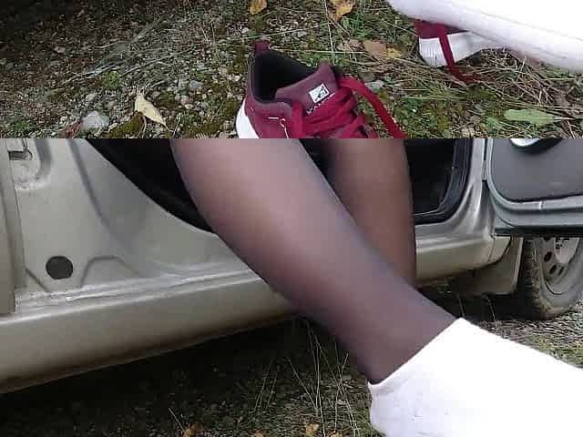 Hot beauty in nylons shows her legs and wears suit white socks feet foot fetish
