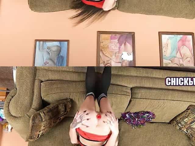 Amy Douxxx is a tattooed miniskirt wearing cowgirl in this porn video.