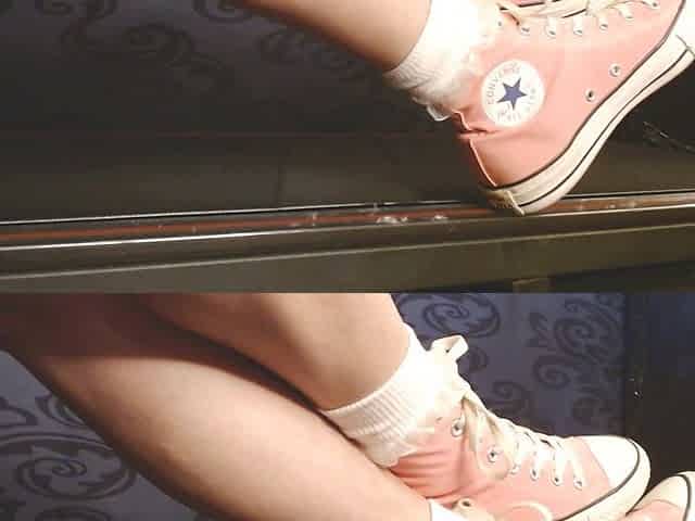 Girl strutting her stuff in high tops with a sneaker fetish twist