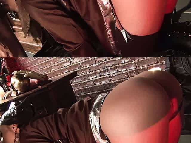 Huge Black Dildo Fucking in Red Outfit with Socks and High Heels