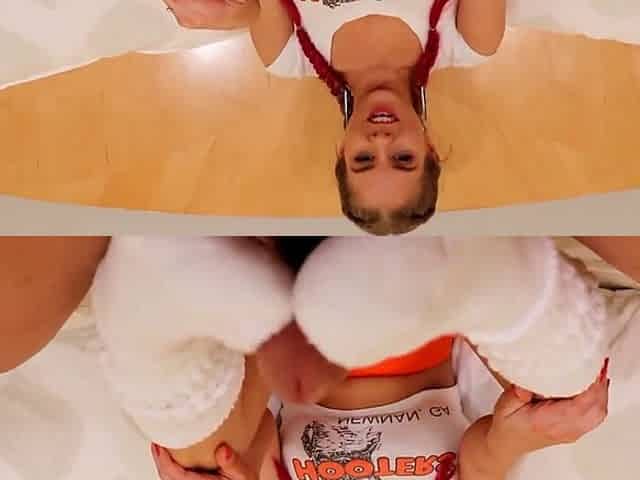 Pov view of Alison Rey's shaved pussy licked in shorts