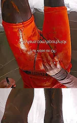 Gunging and ripping sports raiment with ketchup (Nike, Lululemon, Beneath Armour)
