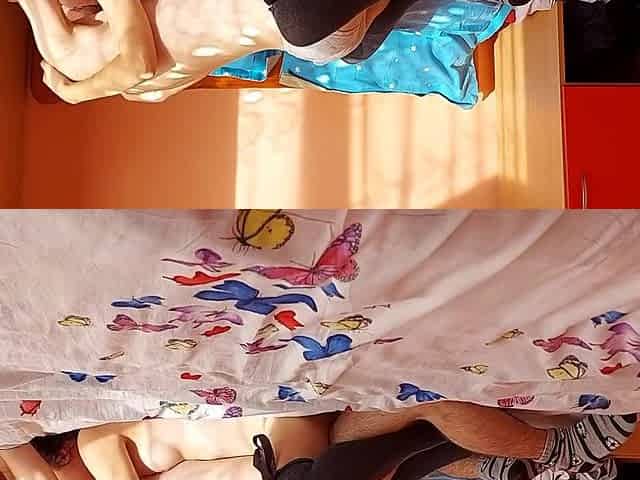 Amateur yoga session ends with steamy sex in socks and a creampie