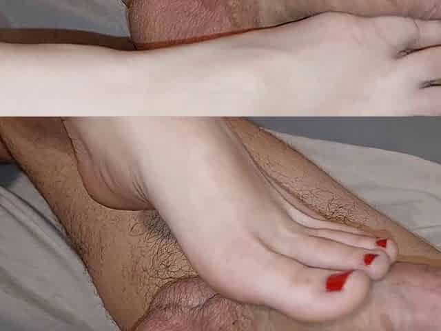 Erotic foot play drives him wild as I tease him with my soles and socks. I crave his hot load deep inside me.