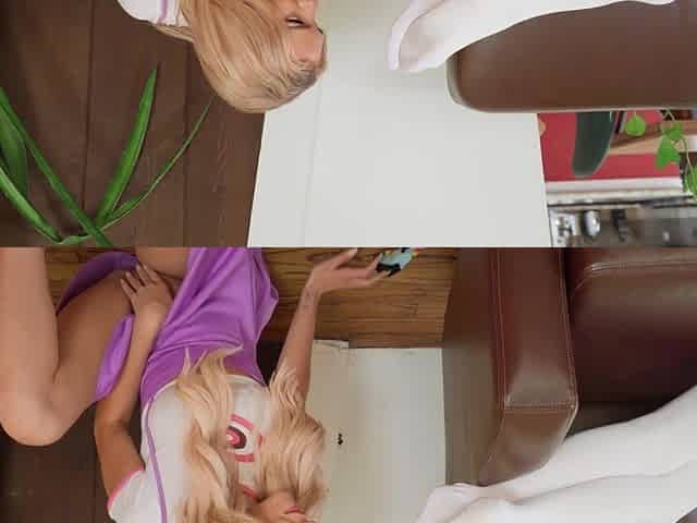 Kinky blonde Kenzie Reeves moans loudly while fucking on the couch