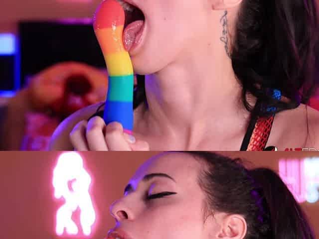 Сладкая шимейла растягивает свою фемпопку и ловит сиссигазм