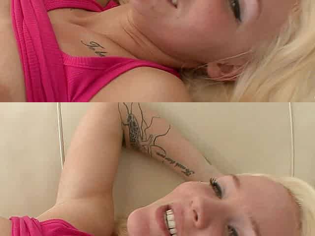 Slutty blonde rides stud's cock wearing ony her socks